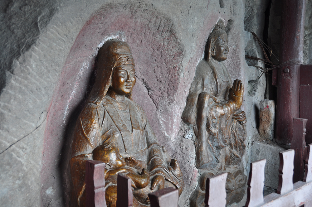 山頂有古剎天子殿,創(chuàng)建于康熙、乾隆年間,是此寨最高點(diǎn)。正殿墻壁有女媧補(bǔ)天故事的壁畫,畫下方,有一遺石,似石寶寨。李仁奇 攝