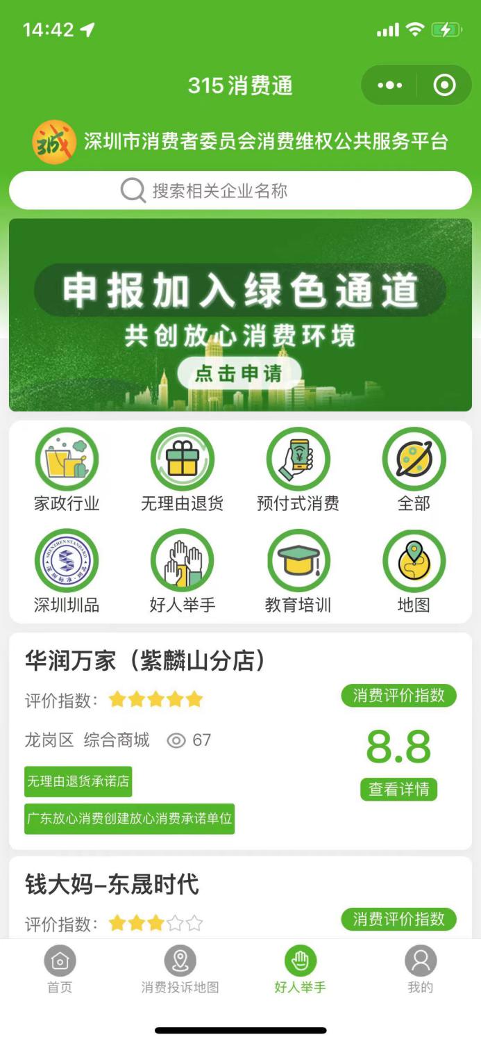 深圳消委會(huì)“315消費(fèi)通”小程序“好人舉手”-“無(wú)理由退貨”欄目