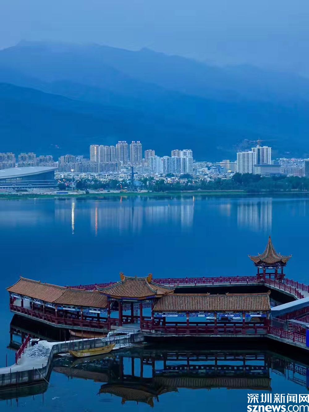 海心亭長廊一直延伸到洱海中,感覺自己與洱海的距離近了。李仁奇 攝