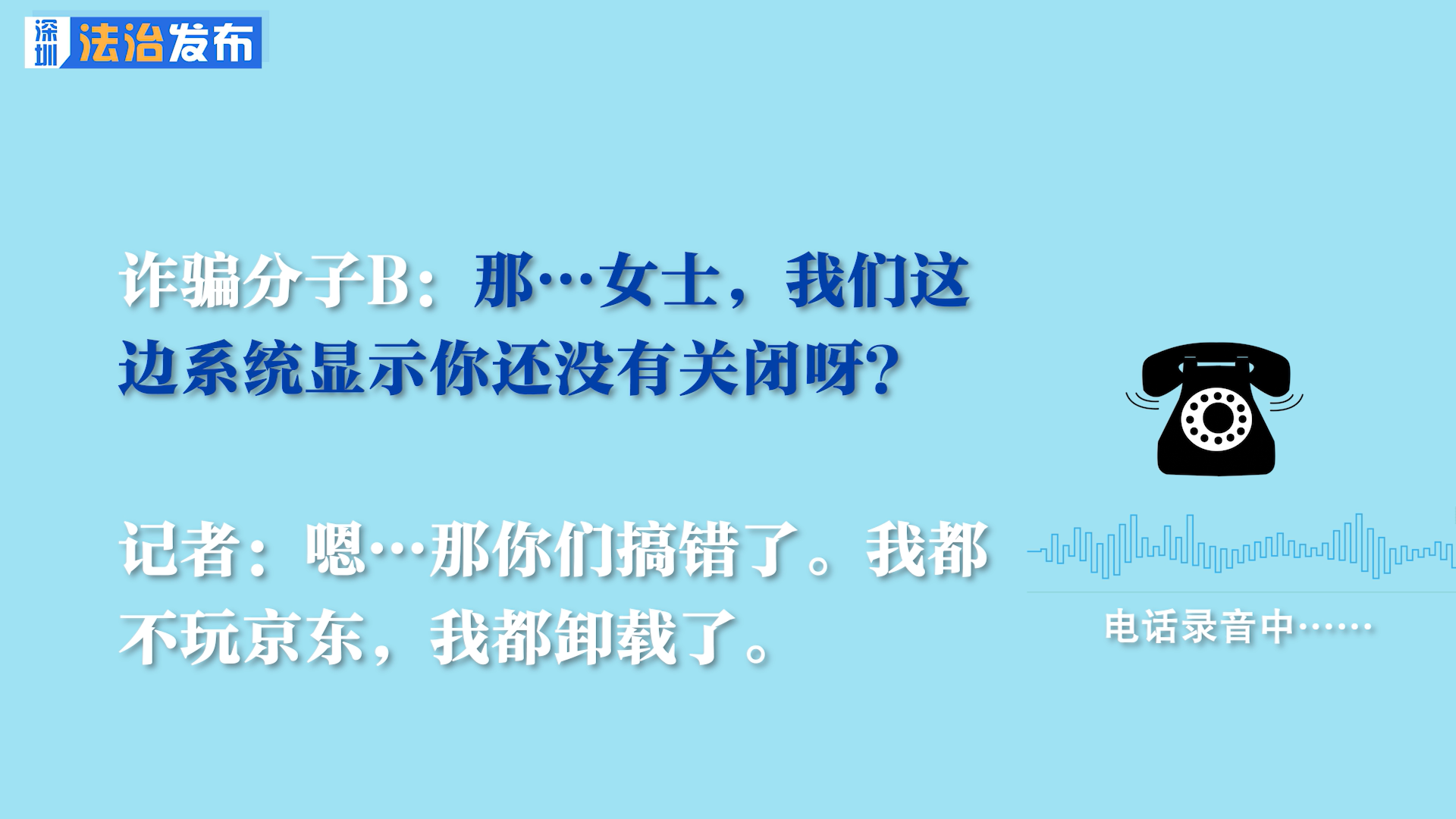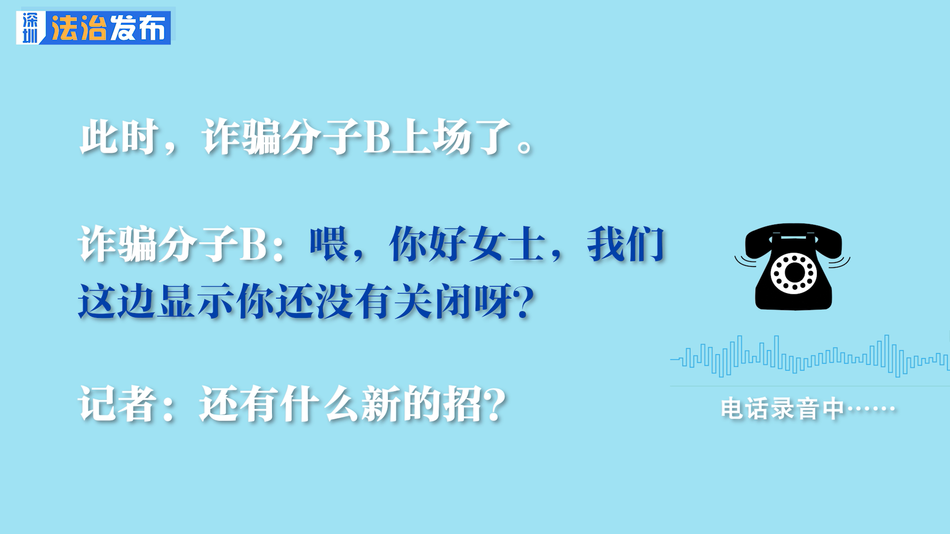 詐騙分子A:(語速很快)但是我們這邊系統(tǒng)顯示你沒有關(guān)閉成功?。∪绻P(guān)閉成功的話……
