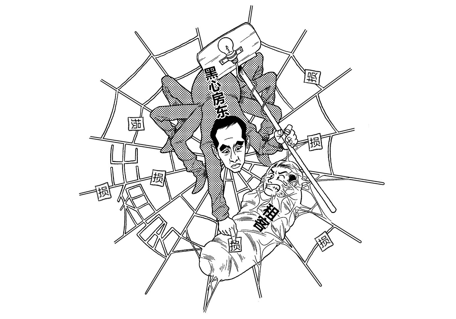 黑心房東套路深,驗(yàn)房定損自提燈。克扣押金賠損耗,吃干抹凈租房人。