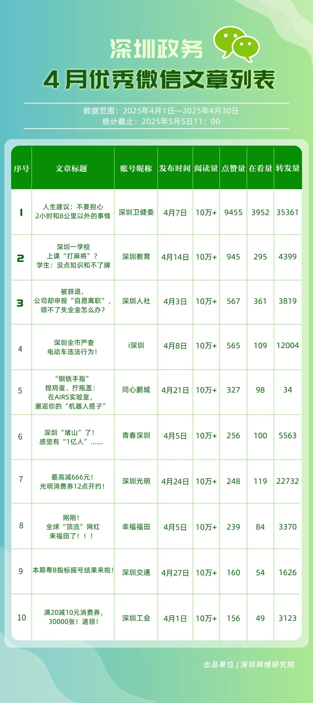四、4月深圳優(yōu)秀政務新媒體賬號