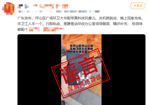 記者梳理發(fā)現(xiàn),2024年6月,也曾出現(xiàn)“深圳環(huán)衛(wèi)工人佩戴的定位手環(huán)停留15秒后將自動報警”的謠言,此前深圳市城市管理和綜合執(zhí)法局已辟謠。