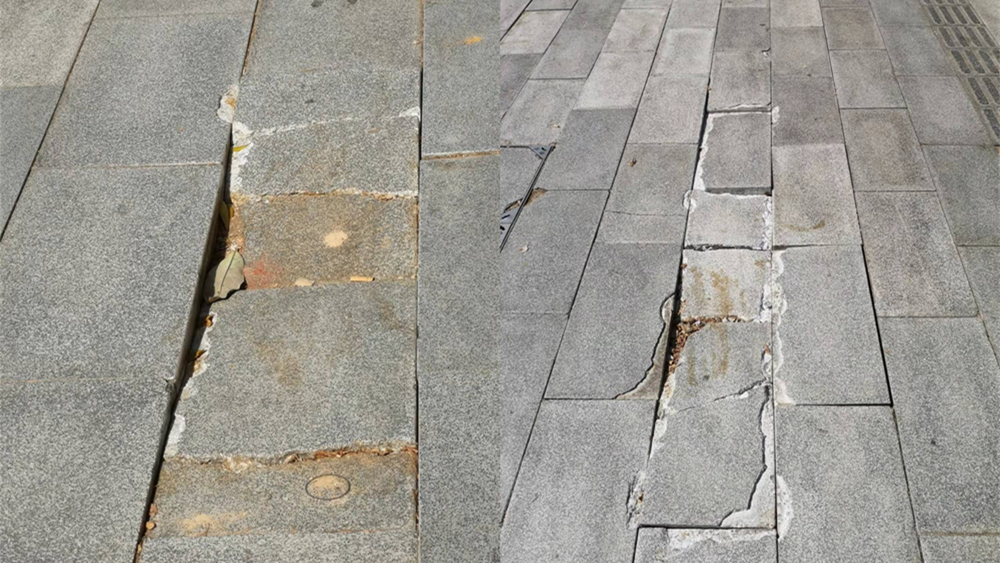 松崗人行道地磚破損盼修復(fù),官方:核實情況后處理