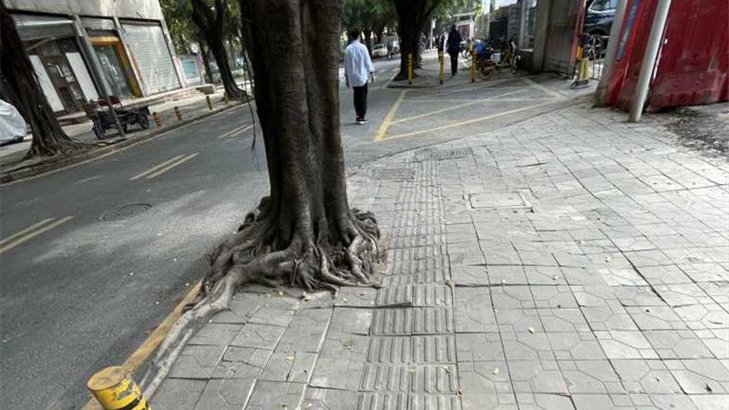 樹(shù)干擋道圍欄多余?官方:可保護(hù)樹(shù)木,消除隱患