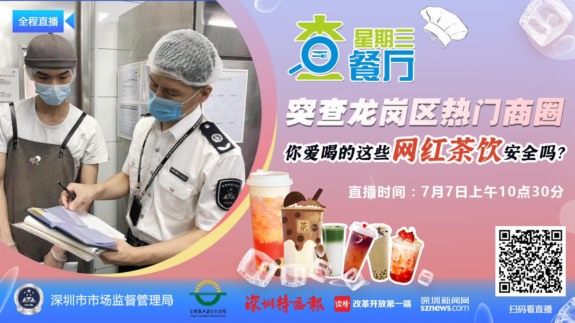 “星期三查餐廳,讓深圳人吃的更放心”。8月2日,有媒體曝光“奈雪的茶”存在食品安全隱患,在社會上引起廣泛關(guān)注,同時(shí)正值濕米粉中毒事故高發(fā)期,為回應(yīng)民生熱點(diǎn),科普食安知識,8月4日,“星期三查餐廳”專項(xiàng)執(zhí)法行動突擊檢查位于鹽田區(qū)大梅沙的“奈雪的茶”飲品店和經(jīng)營濕粉類餐飲店--海月居海鮮餐廳。